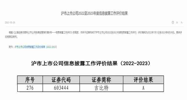 近日,,,,上海证券交易所(以下简称“上交所”)发布2022-2023年度信息披露工作评价结果。。。1win(股票代码:::603444)凭借规范的公司治理、、、高质量的信息披露以及良好的投资者关系管理再次荣获信息披露工作A级评价,,,公司连续两年获此殊荣。。。